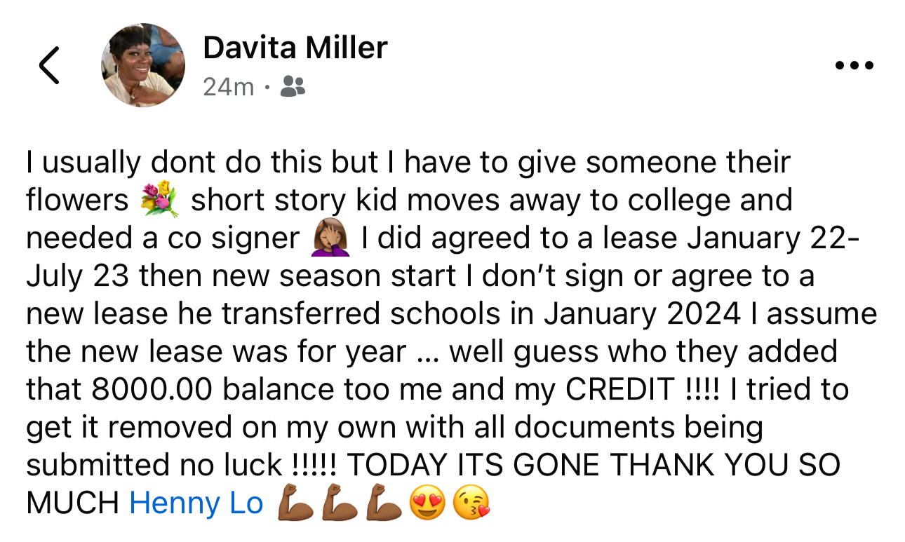 The founder of A Word Of Advice Consulting™ and Tips With Henny™, where I’ve personally helped 3,000+ people repair their credit, get structured, and secure funding